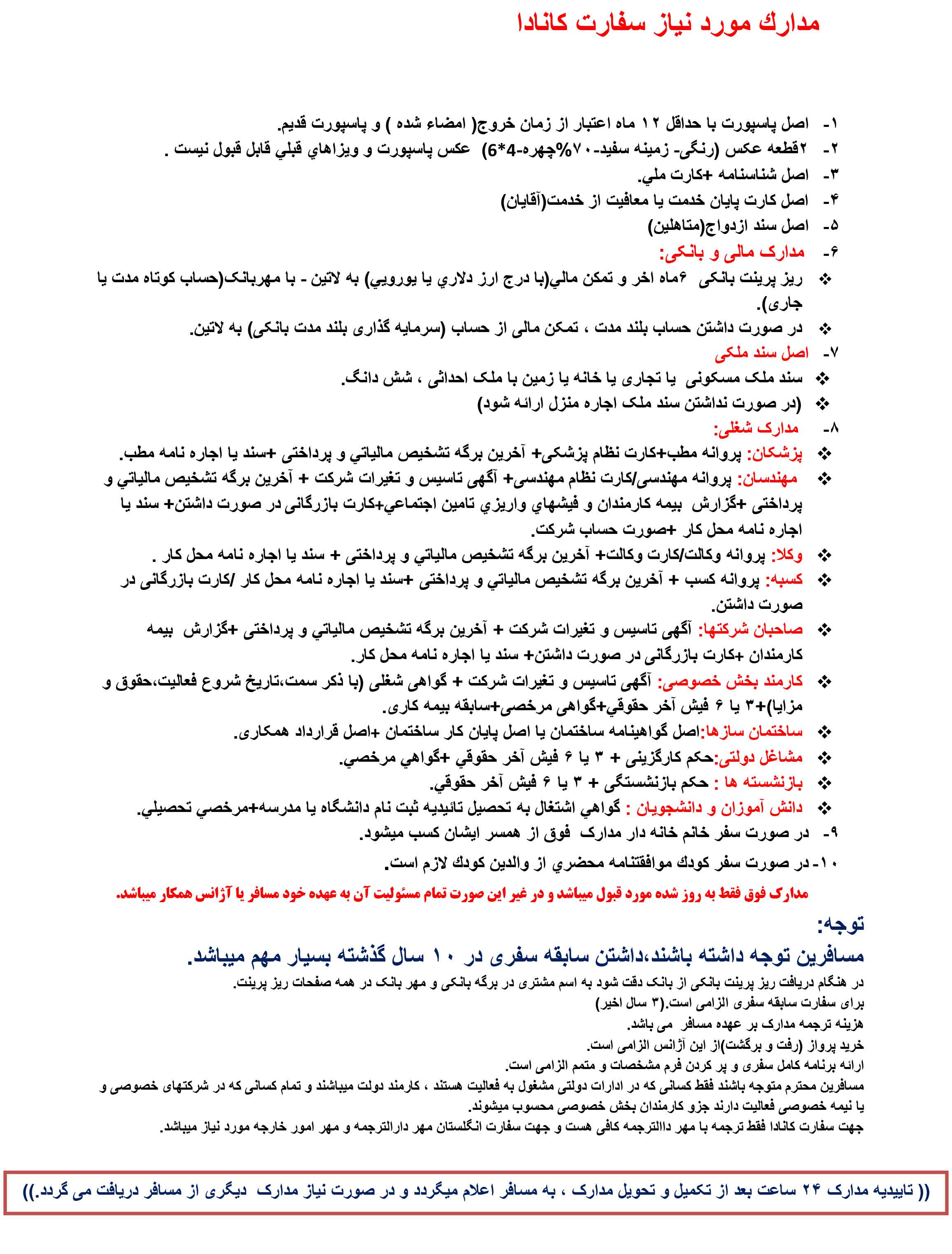 هزینه ترجمه مدارک بر عهده مسافر میباشد
