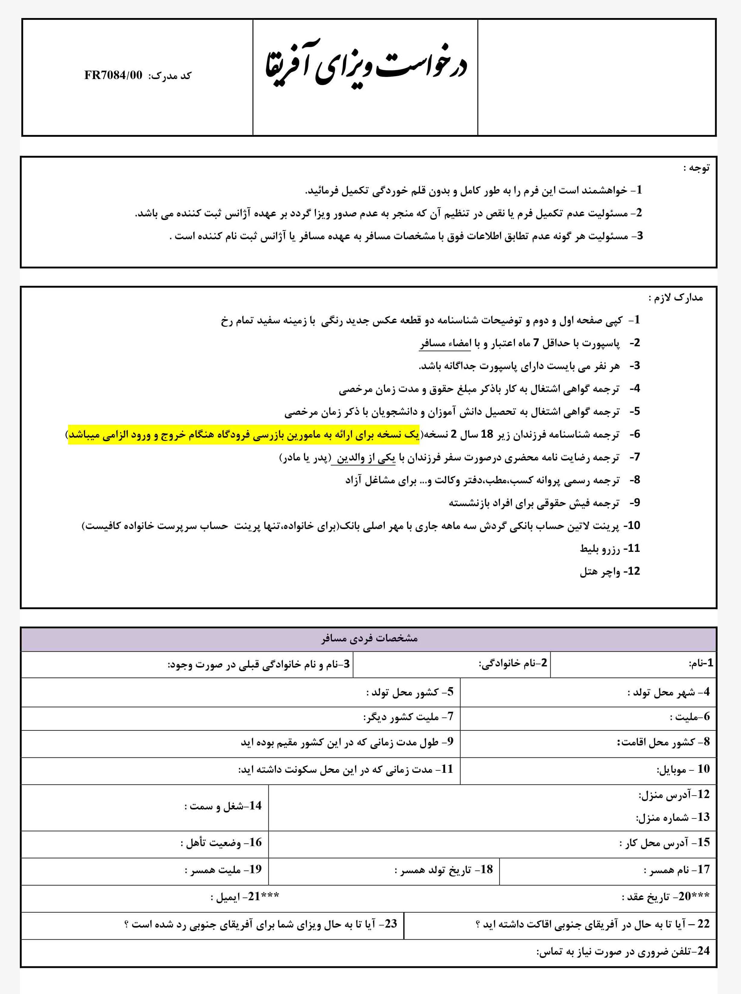 : اصل پاسپورت با امضا | یک قطعه عکس 4*6 | گواهی اشتغال به کار لاتین | تمکن مالی 2000 دلاری | رزرو هتل | فرم مشخصات فردی